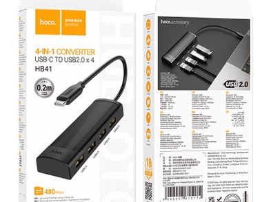 - Hoco HB41 Type-C to 4×USB 2.0 Adapter – Black