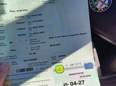 Recent replacement clutch slave cylinder, alternator, battery, rear brake pipes, pads and part exhaust. Also has all important timing belts done. Over 1900 euro spent in last 2 years. Has just had full NCT today.