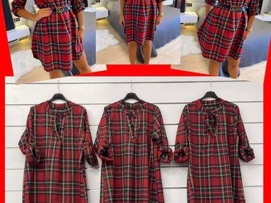 Checkered shirt dress with unisize belt