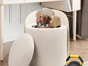 Round Storage Ottoman Upholstered Velvet Vanity