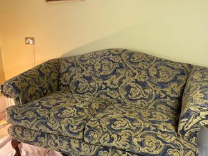 Traditional Two-Seater Sofa in Blue & Gold Damask