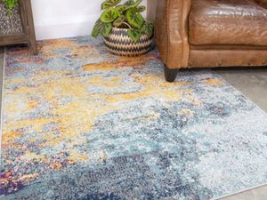 Teal Blue Ochre Mottled Rug Distressed Abstract