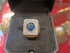 Blue Stone & CZ Signet Ring , 9k Yellow Gold