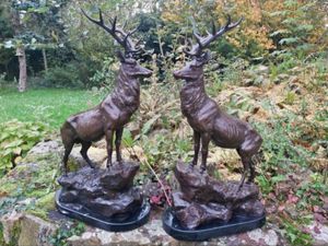 Pair of life size bronze deer statues