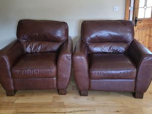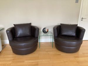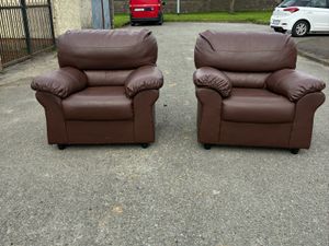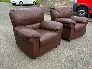 2 Brown Leather armchairs €60Each €100 for 2
