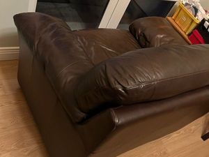 2 Natuzzi Ital brown leather armchairs and cushion