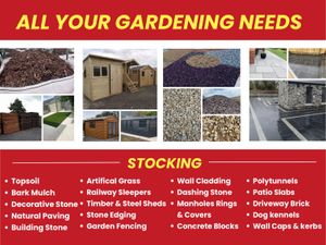DECORATIVE STONE, PAVING, LANDSCAPING GARDEN SHEDS
