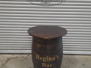 Oak whiskey barrel table