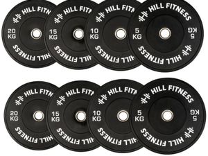 Hill Icon Black Bumper Plates 60kg Set Weights Gym