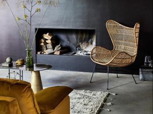 HK Living Rattan Egg Chair with Natural Sheepskin