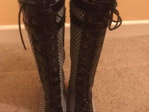 BRAND NEW Black and White Tall Knee Boots, Size 40