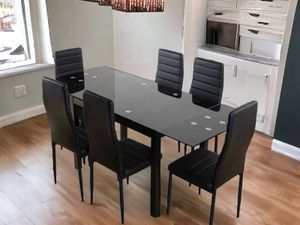 Extendable Glass Dining Table Set with 6 Faux Leather Chairs Black & White Elegant and Modern